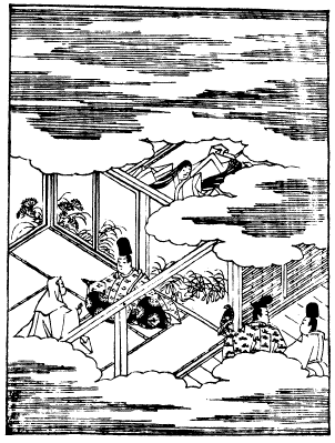 僧都は尼君たちよりも先に行った。非常に荒れていて恐ろしい気のする所であると僧都はあたりをながめて、 |